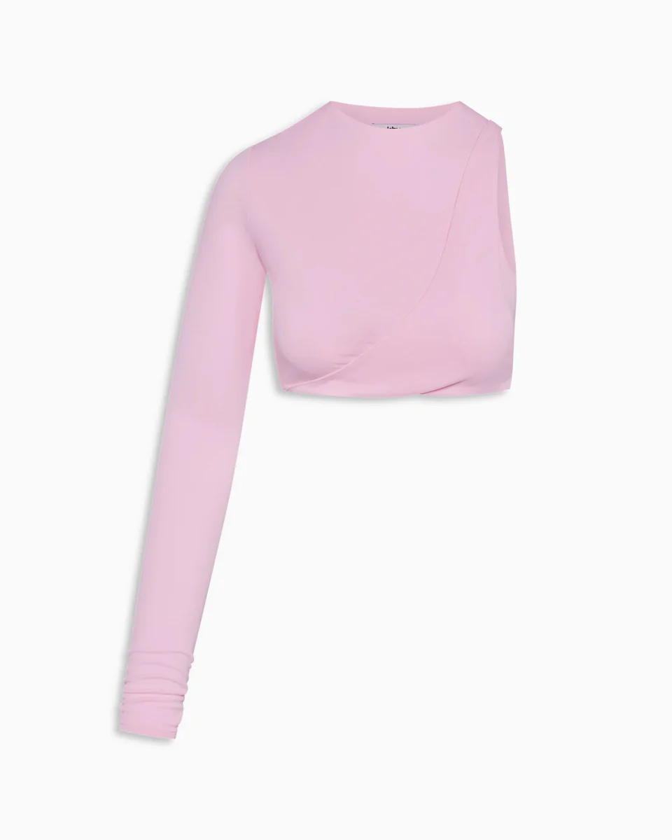 Crafted from Italian matte crepe jersey, this asymmetric top is designed with one full-length sleeve and a single-strap side that can be styled two ways. The strap detail can be worn pulled over the bodice for added texture, or draped low around the waist for a sleek, directional finish. A versatile piece that moves easily from day to night — pair with the matching skirt for a modern set.